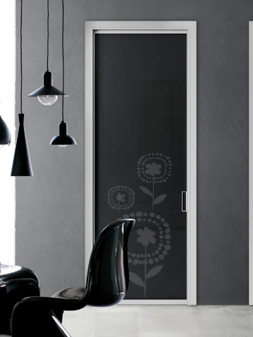 En bois, en verre ou en verre avec un cadre en aluminium. Le verre est toujours très apprécié car il rend l'environnement plus lumineux : idéal surtout pour les espaces de petite taille. Les propositions signées Doal peuvent être appliquées sur différents châssis disponibles sur le marché. Les portes coulissantes traditionnelles sont dotées de montants en aluminium qui servent de cadre pour le passage. Il est possible de choisir ce cadre assorti au cadre de la porte dans les couleurs argent, blanc, marron et anthracite. En ce qui concerne les portes en verre, Doal réalise également différents ornements pouvant être appliqués sur les surfaces ; c'est un moyen de donner à la porte une grande personnalité et de personnaliser davantage sa maison. En plus d'augmenter le degré de luminosité de la pièce, elles peuvent être personnalisées avec des logos d'entreprise, des décorations et des dessins, des jeux de contrastes chromatiques, une grande liberté créative qui se traduit par un élément d'ameublement unique.