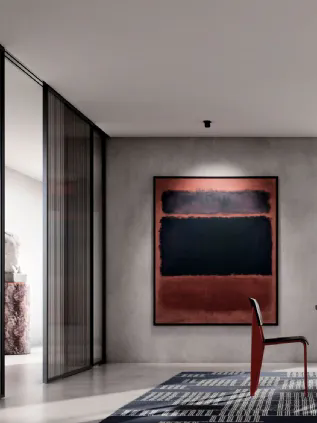 Ces modèles disposent d'une structure en aluminium disponible dans les couleurs blanc, marron, argent et anthracite, ou bien peint en cuivre, bronze ou noir. Grâce au système coulissant, on obtient une meilleure maniabilité des surfaces qui, dans le cas d'une porte battante traditionnelle, seraient occupées par le rayon d'ouverture. Doal propose des modèles en verre avec cadre en aluminium, tout en verre ou en bois. Le passage d'une pièce à l'autre est extrêmement fluide et flexible, créant une continuité structurelle et stylistique qui confère à la maison un aspect moderne et élégant.